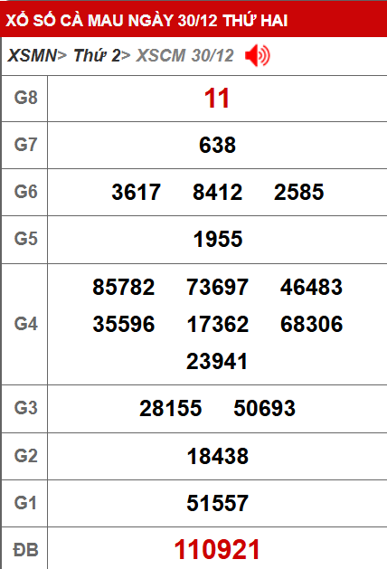 Thống kê XS Cà Mau ngày 06/01/2025: