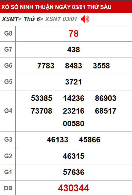 Thống kê XS Ninh Thuận ngày 10/01/2025:
