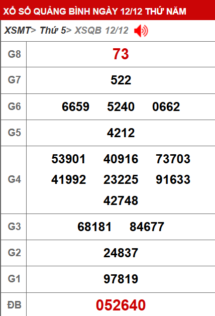 Thống kê XS Quảng Bình ngày 19/12/2024: